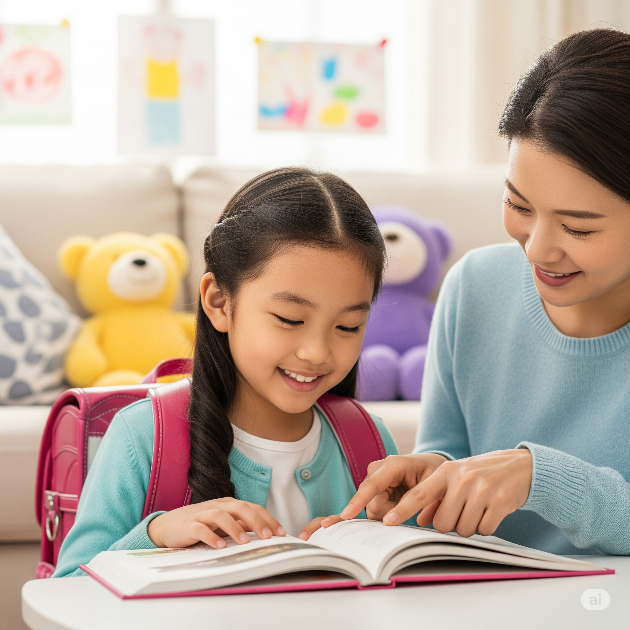 - 부모가 먼저 모범 보이기: "우리 영어책 시간이다!"
